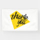 Modern, bold, vibrant graphic design of a saying "Thank You" with trapezoidal geometric shape in yellow and black colours. Handwritten, brush stroke style typography.