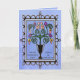 A richly toned periwinkle blue background sets off this original, modern interpretation of a classic Victorian style multi-colour floral bouquet in a vase surrounded by a wrought-iron frame. Inside greeting "I Love You, Mom!" is customizable.