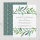 An elegant botanical bridal shower invitation bordered in blue-green watercolor vines. The background colour is shown in white, but can be customized to match your wedding theme.