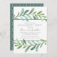 An elegant botanical engagement party invitation bordered in blue-green watercolor vines. The background colour is shown in white, but can be customized to match your wedding theme.