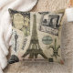 Modern Vintage French travel collage Throw Pillow
