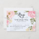 Elegant light pink and blue wedding RSVP card with hand drawn* pink roses, pink flowers, pink peonies, purple peonies, beige flowers, dark green leaves and twigs in watercolor hand painted style. Sophisticated handwritten font style, with classic chic typography. Trendy wedding invitation.Some elements by CreateTheCut.com. <br />