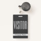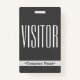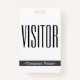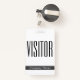 This contemporary look badge design features the message "VISITOR", and a customizable company name or other custom message. A badge like this could perhaps be used to indicate that a person is a known and authorized guest or visitor at a business or workplace. [~Z0000307]