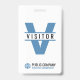 A modern visitor ID badge for your company, small business, school or hospital. The simple but elegant design shows the capital letter V with the word Visitor. It includes business name and logo, as well as a business tag line or slogan. This modern visitor ID badge can be easily adjusted to work as an ID badge for volunteers.
