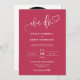 This invitation features an elegant "we do" calligraphy and simple sans serif typography font with an arch shape photo and QR code in a viva magenta background. The simplicity and clean design of this invitation works well with all wedding themes and definitely a great addition to your wedding.