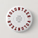 Volunteer Button Pin with custom business/organization logo.. "Volunteer" in dark red.