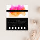 Chic watercolor business cards feature your name or company name layered on a blooming inkblot illustration in bright, colourful sunset hues of fuchsia pink ad goldenrod. Add your full contact information to the back in white on crisp black. Includes your custom loyalty offer (shown with "enjoy 20% off any service after five visits"), and six punchouts.