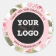 Modern Watercolor Floral Pink Black Classic Round Sticker