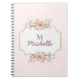Modern Watercolor flowers Monogram Script Name Pink notebook