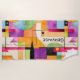 Beautiful abstract design with geometric watercolor shapes of circles and rectangles in violet, orange, blue and green adds a lovely touch of sophistication to your beach or pool time. Personalize with a name in a casual hand-printed style typography makes a great beach-worthy towel!