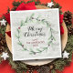 Decorate your Christmas party this holiday season with these unique and trendy Christmas paper napkins. The design features a festive watercolor holly wreath with "Merry Christmas" script wording. Easily add your custom wording to these holiday napkins by using the "Edit this design template" section, or click the "Customize it" button to access more advanced editing tools.