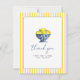 Cute bright and cheerful watercolor lemons in blue and white bowl with yellow and white stripe border Bridal shower flat thank you card with Brides name and thank you message in the back. You can delete the message and include your own message or delete.