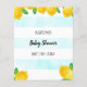 These bingo cards are perfect for anyone having a baby shower this year. The design features bright yellow lemons on a pretty turquoise and white striped watercolor background and easy to personalize template wording.