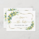 Unique Watercolor Lemon Branch card design featuring watercolor lemon branch with flowers, leaves and fruits, faux gold frame, modern "save the date" calligraphy. Use Personalize tool to add your info. For matching items, please, visit my Watercolour Lemon Collection.