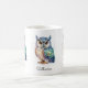 Capture the magic of the night with this striking Horned Owl picture mug. This elegant design reimagines the classic nocturnal bird with a shimmering palette of teal, violet, and golden amber, in an iridescent watercolor style. Perfect for birdwatchers, night owls, and wildlife lovers, this design brings an ethereal, artistic touch to every coffee break. Personalize it with a name to create a signature piece for your desk or a thoughtful gift for the nature enthusiast in your life.