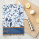 Modern Watercolor Pastel Blue Flowers Pattern Name Kitchen Towel