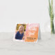 This graduation thank you note card features a trendy pink and orange watercolor painted background. The front offers a vertical photo frame and custom text for the graduate's photo and name. The inside offers custom text for you to add your own personal thank you message.