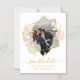 Wedding Save the Date magnet with delicate watercolor flowers and golden accents. Customize with couple's photo