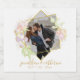 sparkling wine bottle label with delicate watercolor flowers and golden accents for wedding reception or rehearsal dinner. Customize with couples photo, name and wedding date.