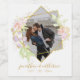 Wine label with delicate watercolor flowers and golden accents for wedding reception or rehearsal dinner. Customize with couples photo, name and wedding date.