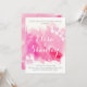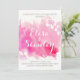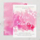 Modern abstract watercolor splash pink blossoms flowers floral wedding couples shower invitation featuring a hand painted watercolor paint splash with texture in tones of pink and hot pink, flowers in white and pink and text in white and grey. This elegant and stylish casual wedding design is a completely customizable template perfect for your spring, summer or fall/autumn wedding. Note that this is only an image of watercolor and not real texture. For best results choose felt or other paper.