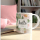 Modern Watercolor Pink Flowers & Hello & Name Coffee Mug