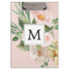Modern Watercolor Pink Flowers Monogrammed Clipboard