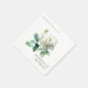 Elevate your tablescape with these modern wedding napkins. Featuring an elegant watercolor design of white roses and botanical leaves, perfect for a bride and groom's wedding, engagement party, or spring and winter celebration in a green and white theme.