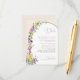 This modern boho floral wedding details card features an offset arch decorated with whimsical colourful watercolor wildflowers, on a beige background. Please check out the collection for the rest of the matching wedding invitation suite and more matching products.