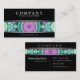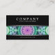 Stylish modern business card with a mostly black background. Between the silver coloured lines the details of a water lily flower mandala show, providing a bright pop of colour, making this contact card stand out from the crowd. Click customize to have more control over font choices and the use of space for text.