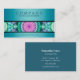 Stylish modern business card with piece of a pink, green and blue flower mandala showing on the front with a blue background. Click customize to have more control over font choices and the use of text space.