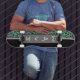 Custom skateboard featuring a cool wave abstract design with black, grey, and green colours. Customize the modern board with your desired text or letters. Made of maple wood. Also makes a nice gift. Use the template to create your own custom skateboard.