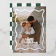 Modern minimal graphic check pattern green and real foil wavy edge photo Christmas holiday card. Bold on trend design. Part of a holiday collection.