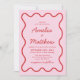 Modern Wavy Pink and Red Retro Squiggle Wedding Invitation