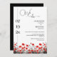 This modern wedding invitation, features a Chinese ink painting of red poppies wildflowers, flower garden, in red and black with an elegant black backing.