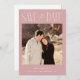 A modern, yet simple wedding save the date card featuring your favourite photo on the front. Add more info, plus a wedding website QR code on the back.