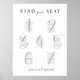 This is simple minimalist elegant 7 table Seating Chart board for wedding. You can customize this seating chart with your guest lists for each table. You can also change background or font colours to better suit your wedding theme, just click "Customize further". There are seating plans with the same design for 3, 4, 5, 6, 7, 8 and 9 tables.