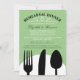 The design features black cutlery on a white plate with a mint green background and the mint green can be easily customized to any other colour of your choice.