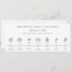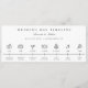 Modern minimalist, wedding day icons, timeline itinerary program. Features, rings, camera, cocktail, dinner setting, cake, music note and confetti icons.