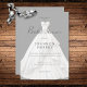 Soft and romantic, this bridal shower invitation design features a white wedding gown centred on a pale silver grey background under a misty white transparent layer. Elegant, simple, and romantic. Created by Simply Farmhouse Press.