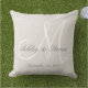 Modern Wedding Monogram Rustic Linen Look Outdoor Pillow