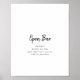 This modern wedding open bar sign is perfect for a rustic wedding. The simple and elegant design features classic and fancy script typography in black and white.