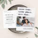 Need to change your wedding date? Notify guests with this modern and lighthearted postcard featuring the words "same time, same place, new date" in grey lettering. Customize with a photo and add your names along the bottom. Personalize the back with additional details, including your new date and a personal message.