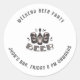 Modern Weekend beer party Classic Round Sticker. This sticker has simple text and black background with beer glasses illustrations. Just edit details to use it. You can use it for week end parties, office parties of holiday summer parties.