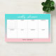 Modern and practical post-it note that will help you get your days organized! This weekly planner has boxes where you can write down your schedule by each day. There is also an extra box where you can write down your weekly to do list. A big helper to get things done without procrastinating! The background is a beautiful pink and mint ombre colour. Customize this product by adding your name at the bottom.