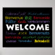 A fun design of the word welcome in English surrounded by the word welcome in other languages like French, German, Spanish and more!