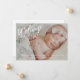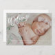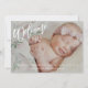 This modern baby birth announcement features a sweet "welcome" in white script typography and includes a photo of the newborn with the baby's stats on the front of the card. The back of the card is solid white, and is perfect for a baby boy or girl.