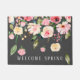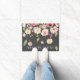 Beautiful watercolor pink & yellow floral doormat set on a charcoal grey background.