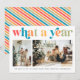 Modern What a Year Retro Colourful 2 Photo Holiday Card