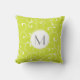Modern Whimsical Curls Lime Green Mongram Throw Pillow